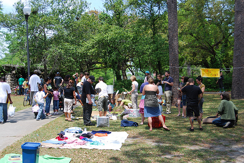 Really Really Free Markets (RRFM) are a great way to meet and share material items, resources, and skills with members of your community. Best of all, everything is 100% absolutely free! RRFM’s are based on the “gift economy“, meaning people bring things they no longer want and anyone who attends can take anything they need. No money is exchanged, no bartering is required, and no questions are asked. (Of course there will always be ‘yard sale vultures’ who are looking for things to re-sell, but when that happens you just need to explain to them that RRFMs are events intended to build tighter communities.) Items range from clothes, books, dishes, plants, fresh produce, bicycles, you name it. Oftentimes people will lend their skills or provide services for free such as hair cuts, back massages, bicycle repair, face painting (it’s a family event where children are always welcome).