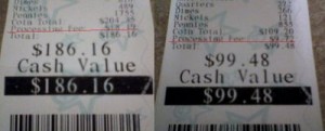 Dawn: I’ve always wondered how people collect enough change to need this service. I carry around a “dainty” change purse and the moment it gets too full, I make sure I count out the coins and spend it the next time I’m in line for a coffee. I must be the anomaly since practically every grocery store seems to have one of these.