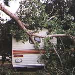 Almost as soon as I returned from my vacation, disaster struck. The lovely tree that had been shading my campsite suddenly decided to shed a very large limb. Just shortly after midnight on September 1, 1998, I was awakened by the sounds splintering wood, and the trailer bouncing around like a toy ball.