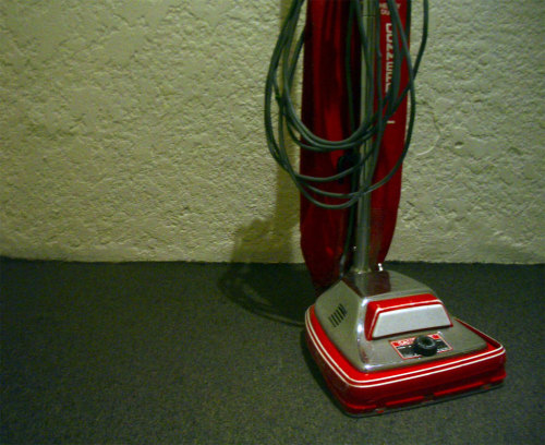 I recently read a blog entry about the best home improvements you can make and according to her, one of them was getting rid of all the carpeting so you don’t need a vacuum cleaner. (I wish I could find the source, but I can’t.) I love that idea.
